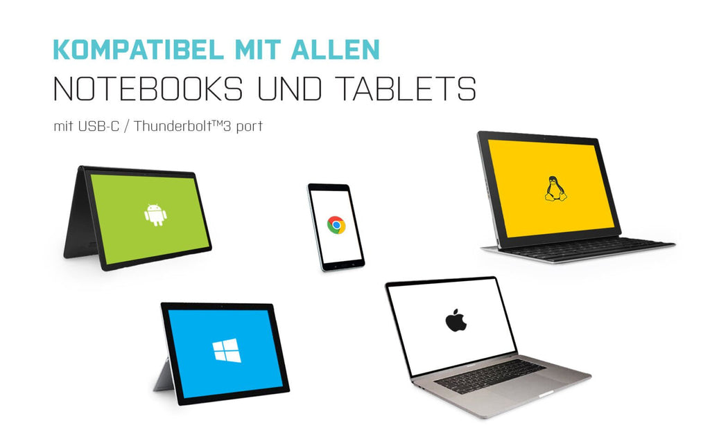 La Docking Station también es totalmente compatible con tabletas y portátiles con un puerto Thunderbolt 3.