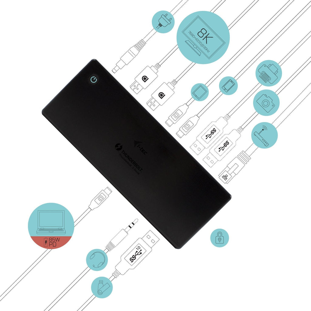 i-tec TB3CDUALDPDOCKPD base para portátil y replicador de puertos Alámbrico Negro