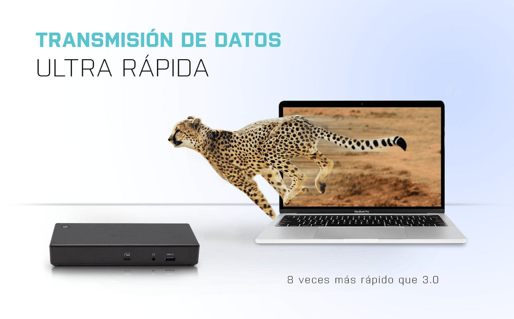 Calidad excelente de la imagen, Internet rápido y capacidad de transmitir datos en velocidades superiores de 1 GB por segundo, hasta en caso que use varios puertos USB a la vez. Por supuesto, también puede conectar sus auriculares o audio o cargar su notebook, todo esto con ayuda de único cable.