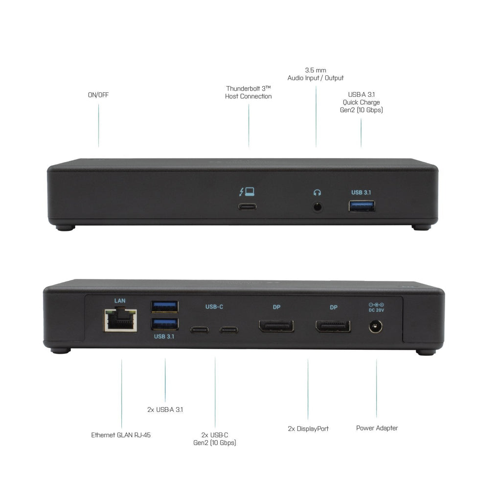 La segunda generación de la tecnología Thunderbolt 3 significa que la estación de acoplamiento ahora es compatible no sólo con los puertos Thunderbolt 3, sino también con USB-C, siendo así una solución flexible para empresas y usuarios que operen notebooks y tabletas con diversos puertos.