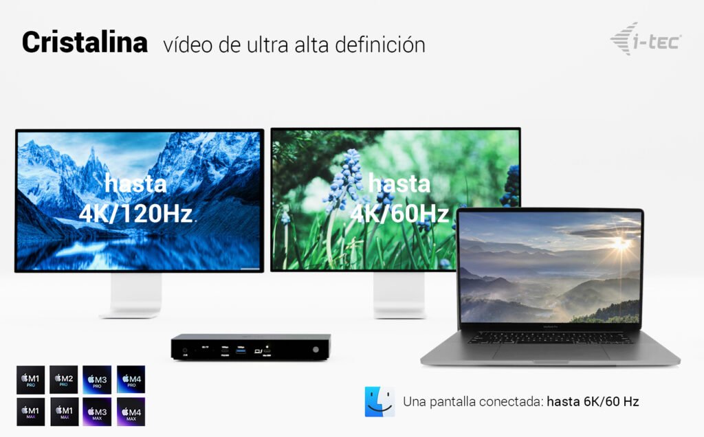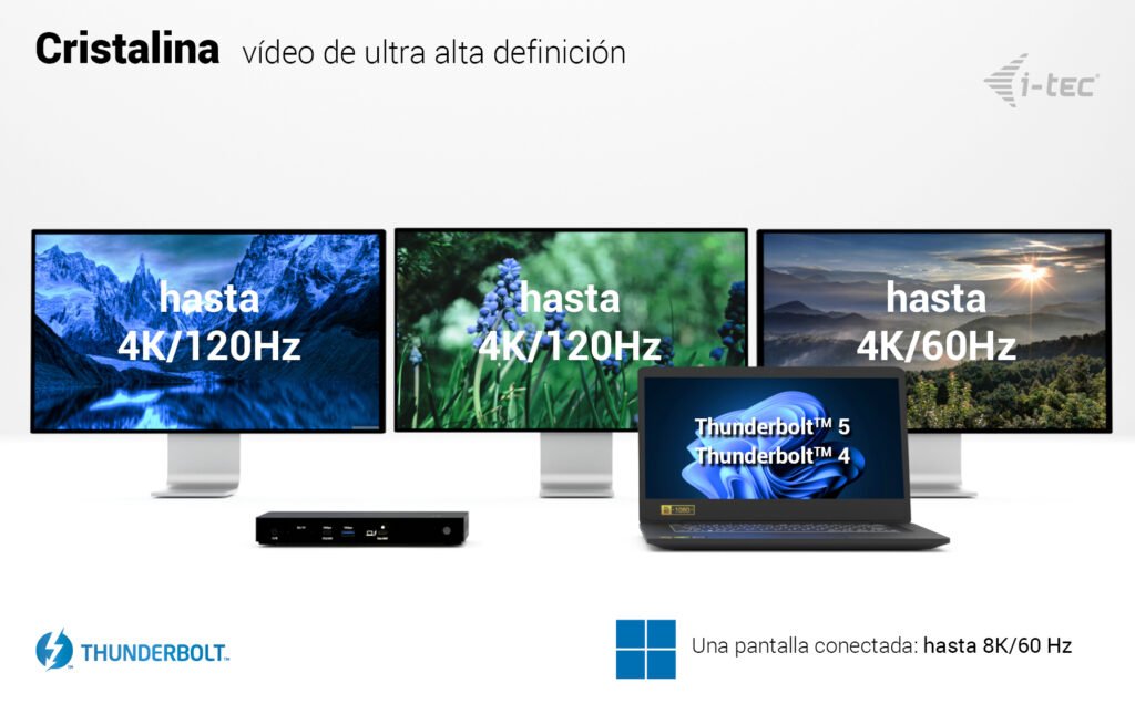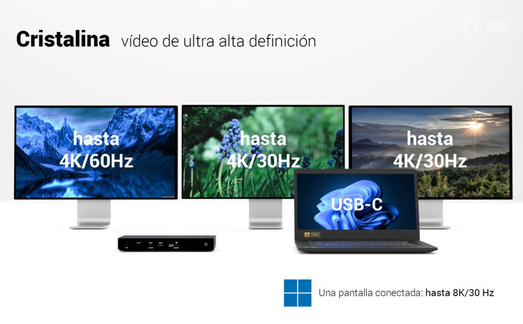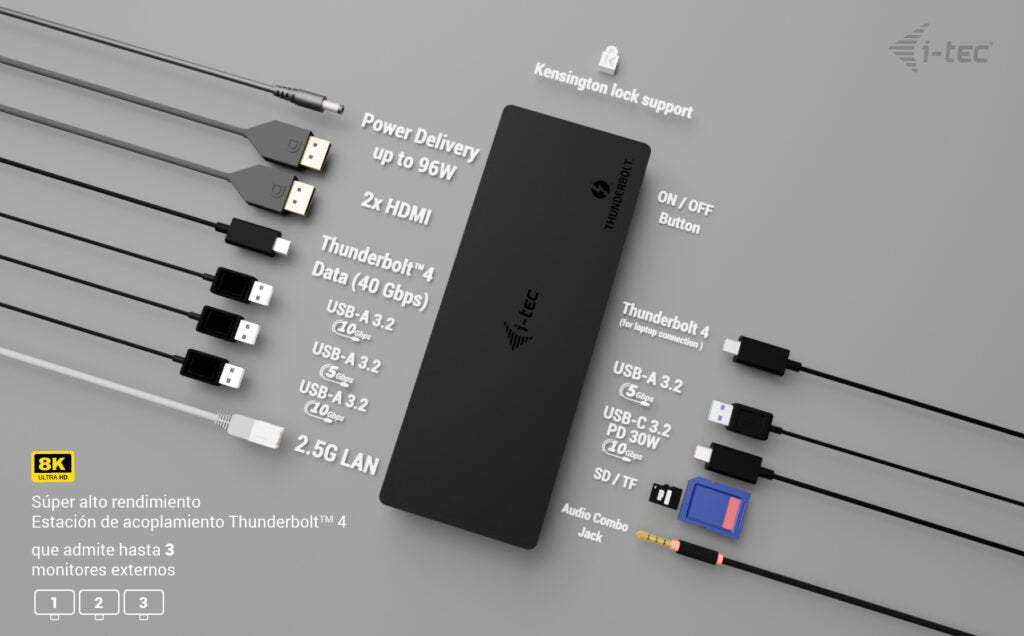 Rendimiento ultraalto, transferencia de datos ultrarrápida y compatibilidad con resoluciones de hasta 8K/60 Hz. ¡Una de las estaciones de acoplamiento i-tec más potentes del mercado!