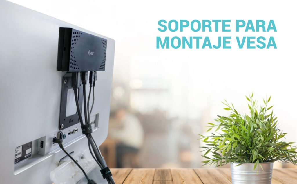 - La estación de acoplamiento admite un soporte VESA para una instalación vertical inteligente detrás de un monitor compatible con VESA