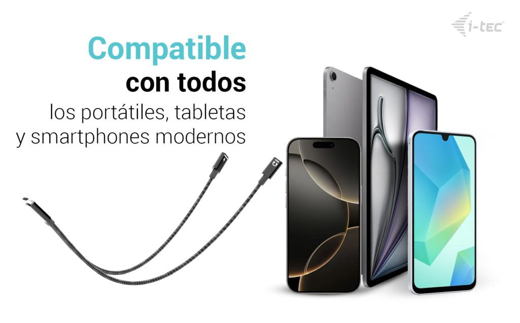 Gracias a su diseño compacto de 30 cm y su peso ultraligero (solo 20 g), es fácil de llevar a cualquier parte. El cable es ideal para trabajar sobre la marcha, en la oficina o en casa, especialmente con dispositivos que ofrecen una disponibilidad limitada de puertos.