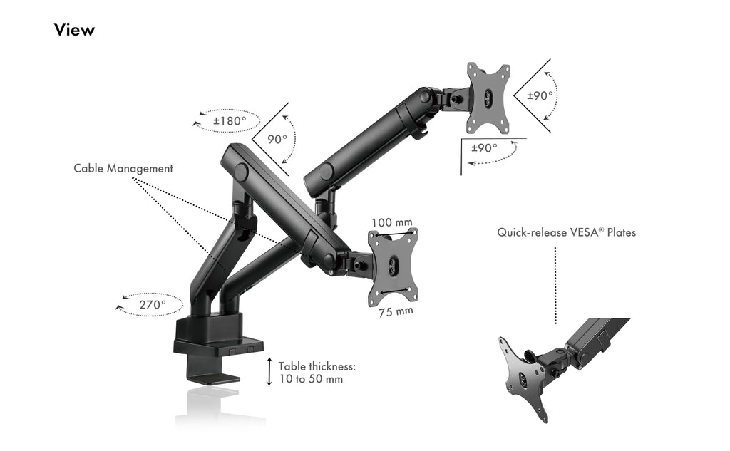 - Interfaz de panel de montaje: 75 x 75,100 x 100 mm