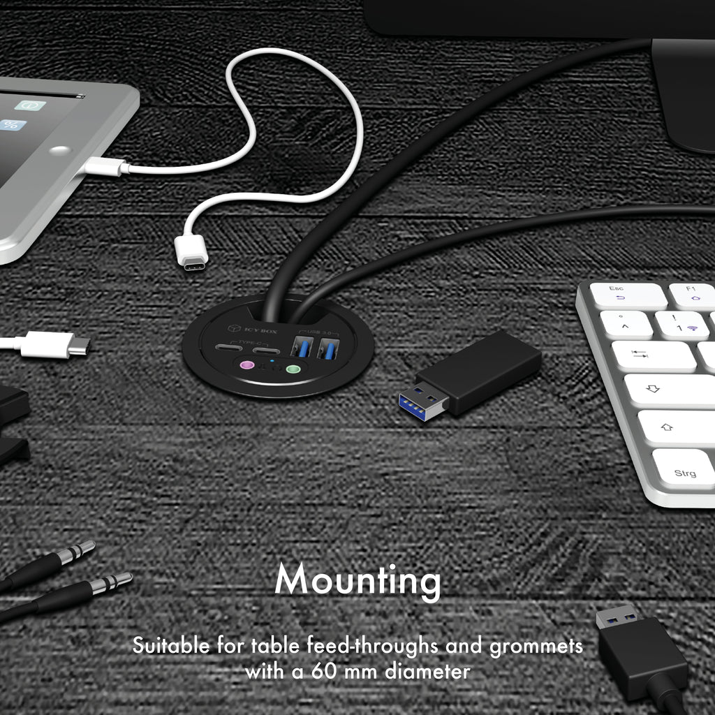 ICY BOX IB-HUB1403B, Antracita, Plástico, Poder, 69 mm, 69 mm, 56 mm