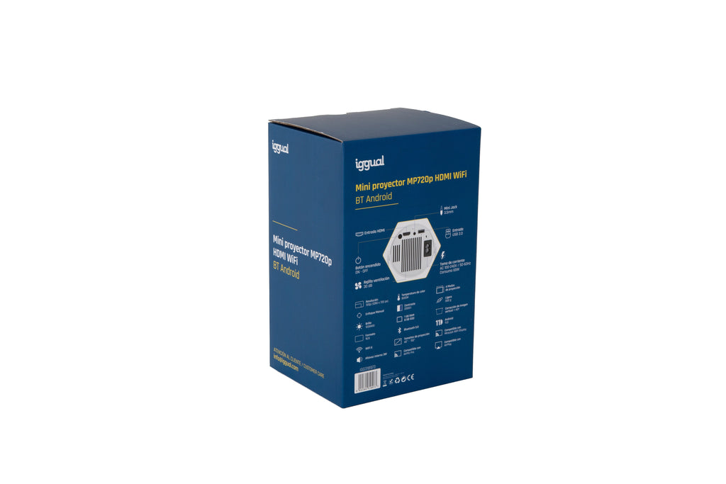iggual Mini proyector MP720p HDMI WiFi BT Android, 120 lúmenes ANSI, 720p (1280x720), 2000:1, 16:9, 1016 - 3810 mm (40 - 150"), 1,2 - 4 m