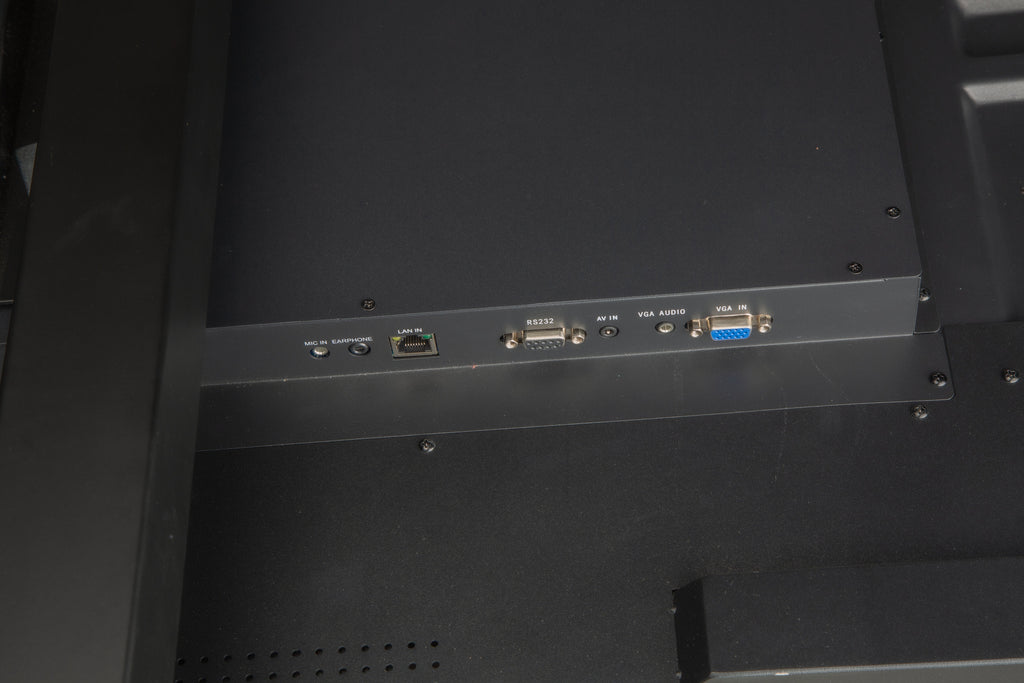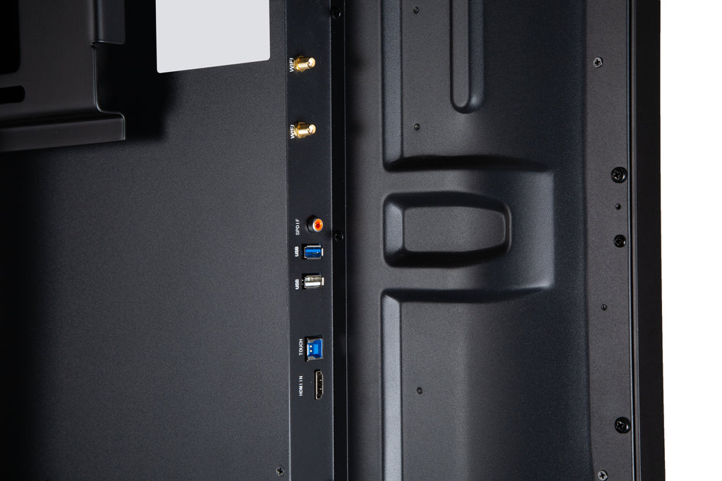 Dispone de ocho puertos de vídeo: tres HDMI de entrada y uno de salida para conexión simultánea a varias fuentes y dispositivos externos, un VGA para video + audio, una entrada AV y un conector YPbPr, que permite la compatibilidad con equipos de vídeo analógico de alta definición. Tiene dos puertos USB tipo B dedicados a la función táctil. Por último, incorpora tres salidas de audio: dos conexiones Mini Jack de 3,5 mm (una para micrófono y otra para salida de audio) y una salida digital SPDIF para una transmisión de sonido de alta calidad a equipos de audio profesionales.