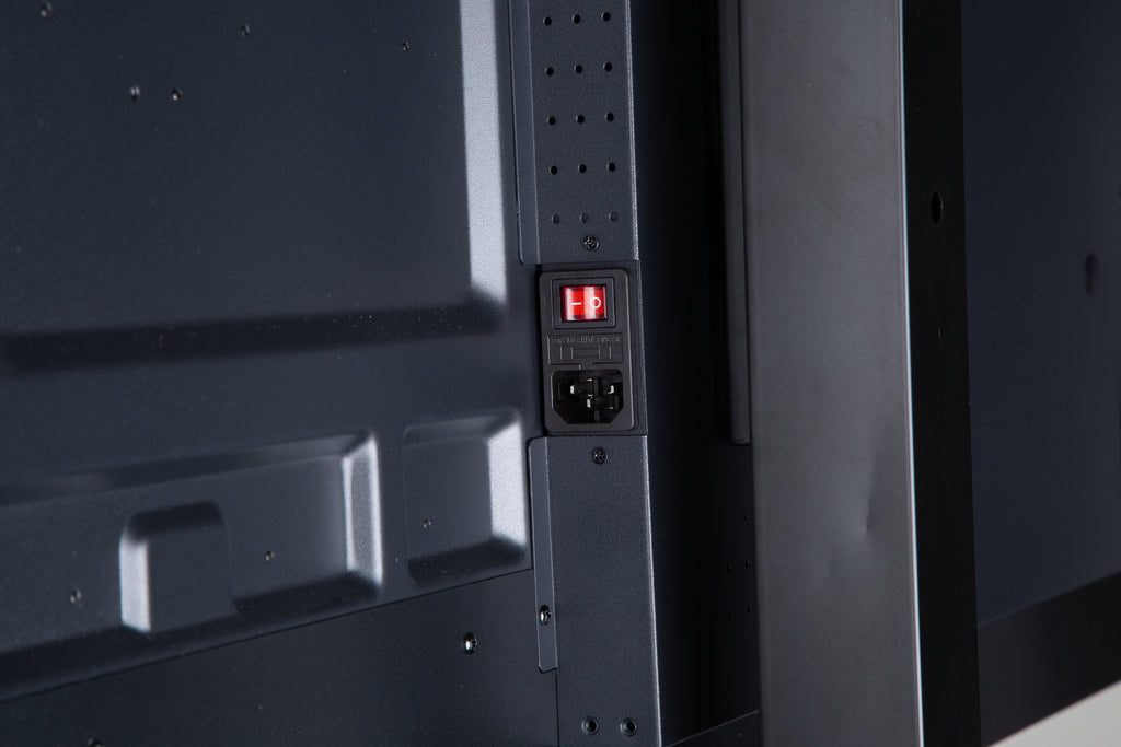 La pantalla interactiva ORCHID de 75 pulgadas ofrece una conectividad excepcional gracias a sus 23 puertos, distribuidos estratégicamente entre el lateral izquierdo y la parte trasera para facilitar el acceso y la organización de los cables.