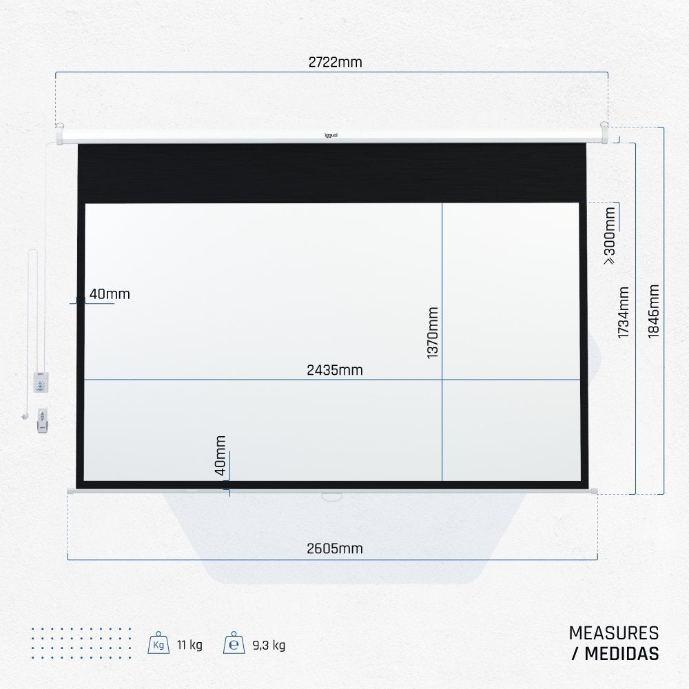 iggual PSIES243, Motorizado, 2,79 m (110"), 2,43 m, 137 cm, 16:9, Pantalla tensionada