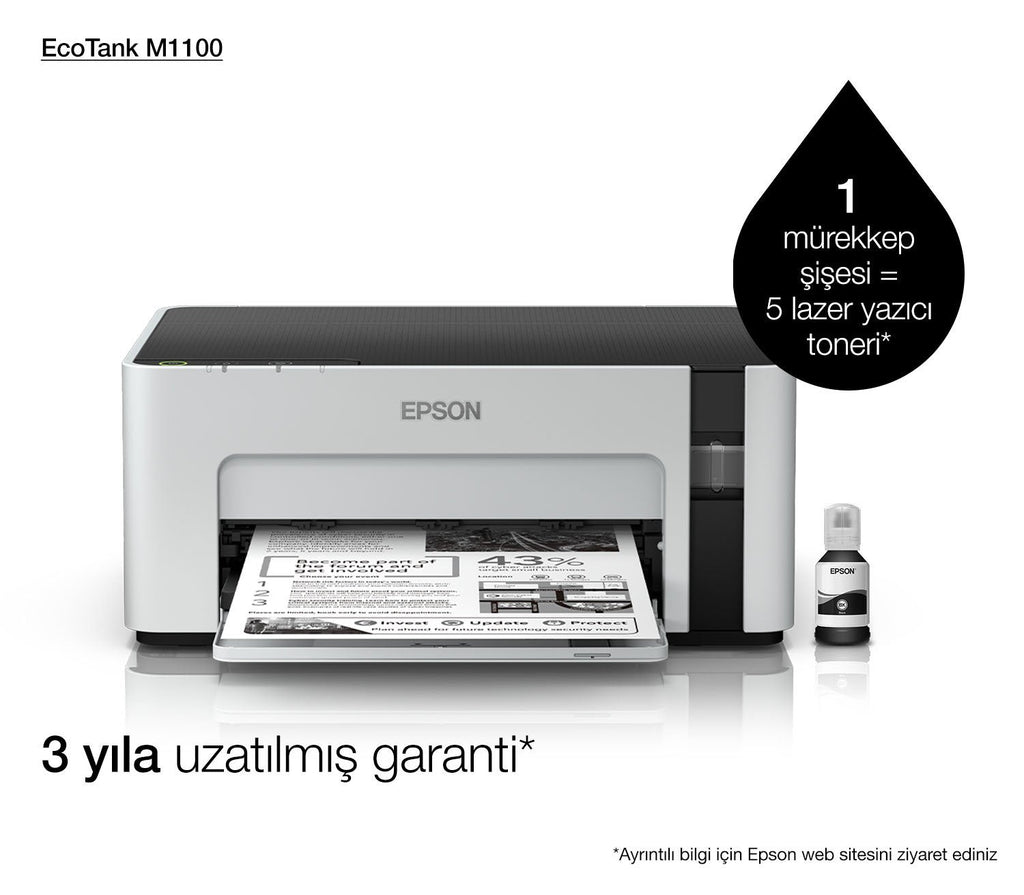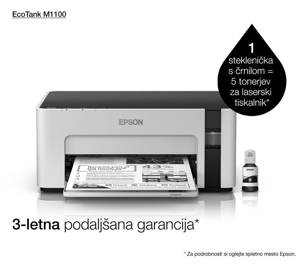 Epson EcoTank M1100, 1440 x 720 DPI, 1, A4, 15000 páginas por mes, 32 ppm, Negro, Blanco