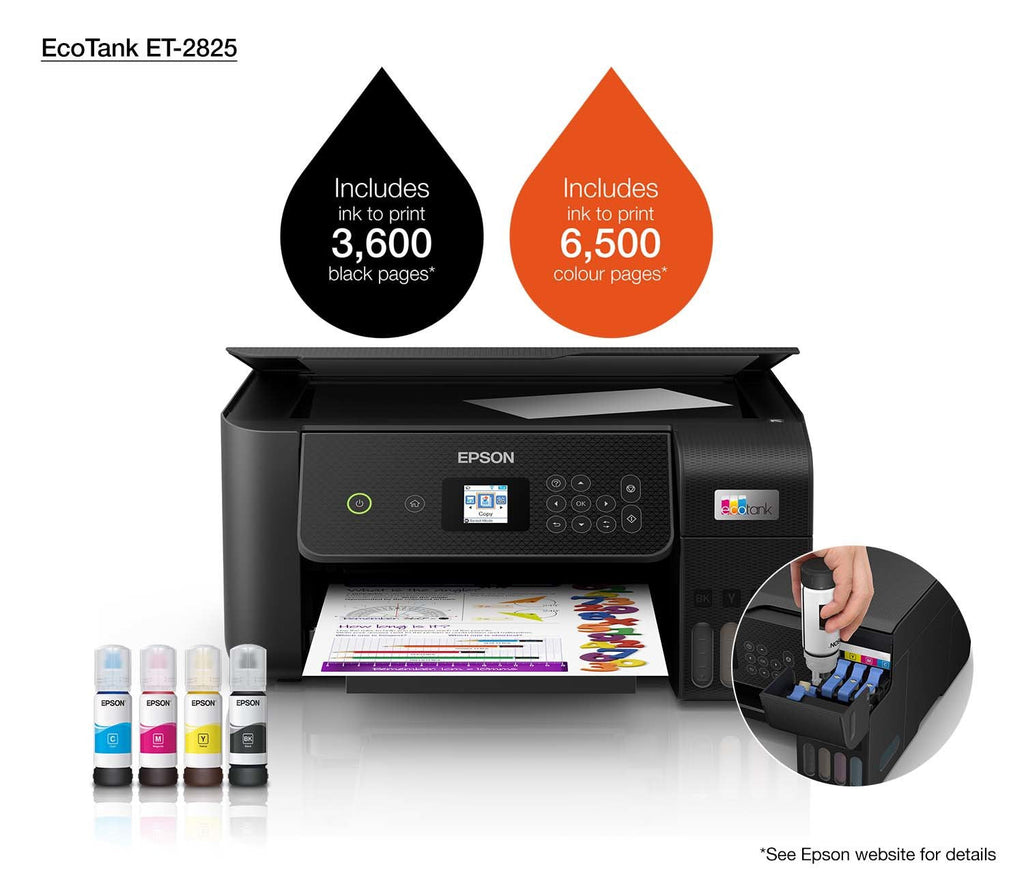 - Sistema de depósito de tinta sin problemas: Disfruta de recargas sin problemas con botellas con sistema de bloqueo y depósitos frontales
