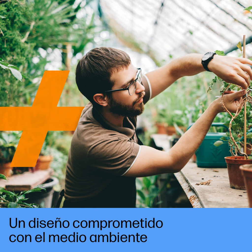 - Materiales y tecnologías sostenibles: Producto de impresión sostenible con HP+; Reciclable a través de HP Planet Partners; Compatible con los accesorios de accesibilidad; Contiene plástico reciclado posconsumo