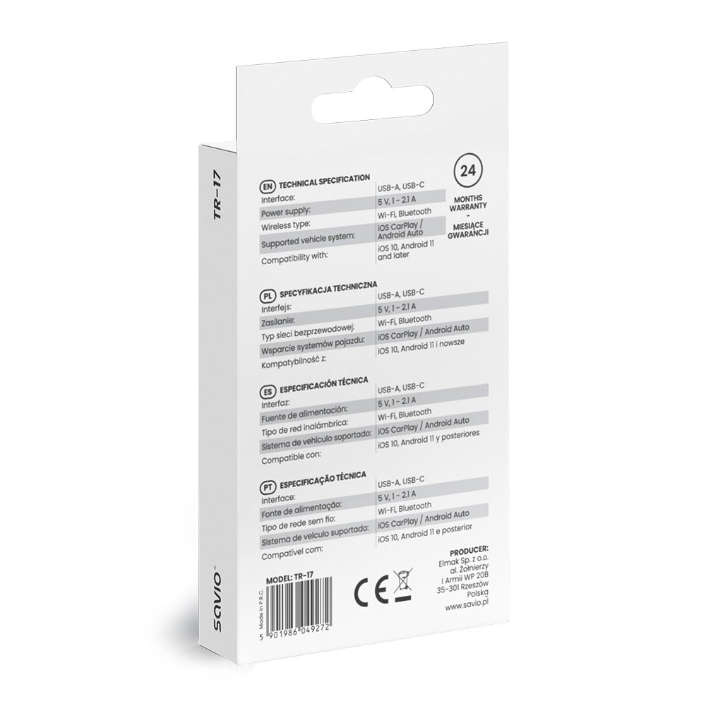 El adaptador inalámbrico Savio TR-17 es una solución innovadora que te permite usar Apple CarPlay y Android Auto sin necesidad de cables. Con este dispositivo, puedes integrar completamente tu smartphone con el sistema multimedia de tu coche de forma sencilla y cómoda.