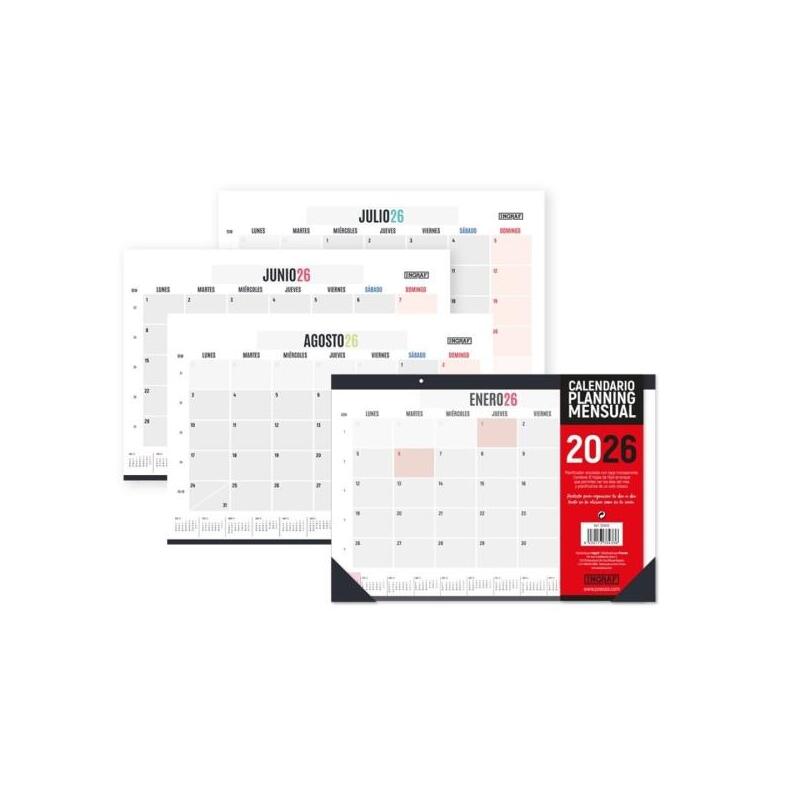 Ingraf Planificador De Mesa Mensual - Encolado Con Tapa De Polipropileno - 12 Hojas De Faciles De Arrancar
