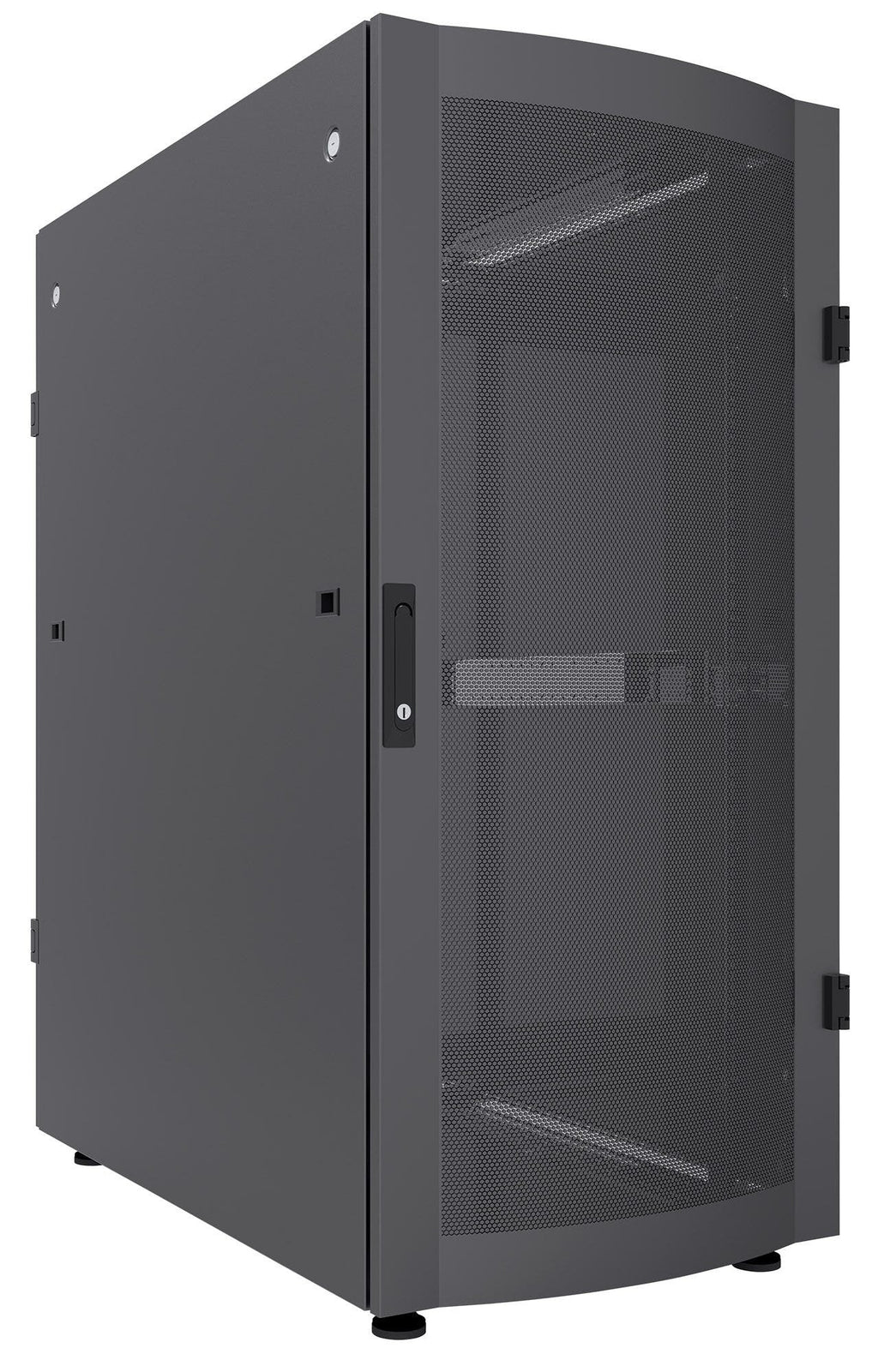 Numerosas opciones de 19" están disponibles para almacenamiento, todas con una profundidad de instalación de 1000 y 1200 mm. El rango de altura de los gabinetes va de las 26 a las47 unidades, tanto en color negro (RAL9005) como en gris (RAL7035), así que hay una solución para cada necesidad. Los páneles laterales desmontables y las puertas con cerradura hacen que el cableado y el intercambio de componentes sea realmente sencillo. Las perforaciones al frente y en la parte posterior brindan un excelente flujo de aire.