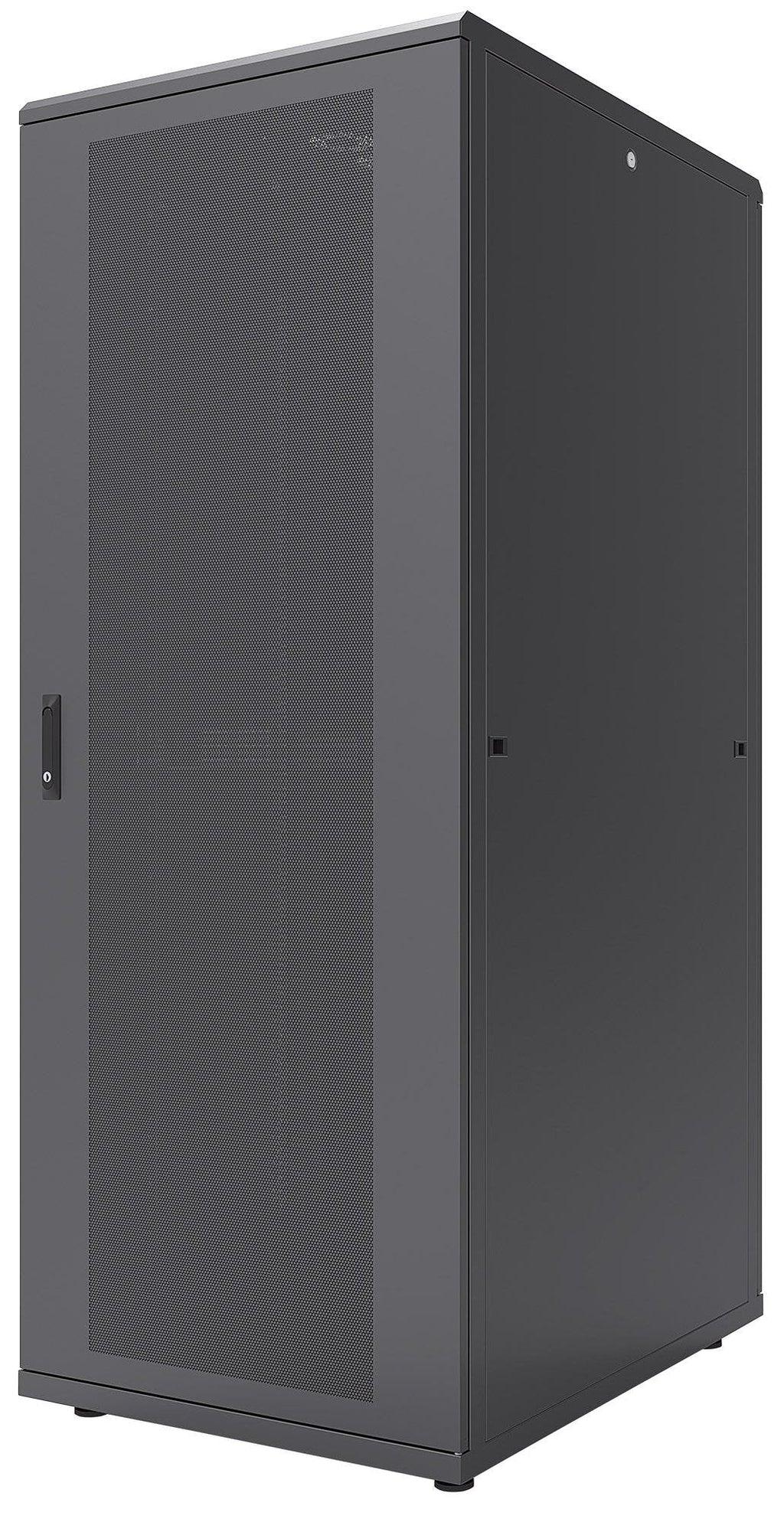 Numerosas opciones de 19" están disponibles para almacenamiento, todas con una profundidad de instalación de 1000 y 1200 mm. El rango de altura de los gabinetes va de las 26 a las47 unidades, tanto en color negro (RAL9005) como en gris (RAL7035), así que hay una solución para cada necesidad. Los páneles laterales desmontables y las puertas con cerradura hacen que el cableado y el intercambio de componentes sea realmente sencillo. Las perforaciones al frente y en la parte posterior brindan un excelente flujo de aire.