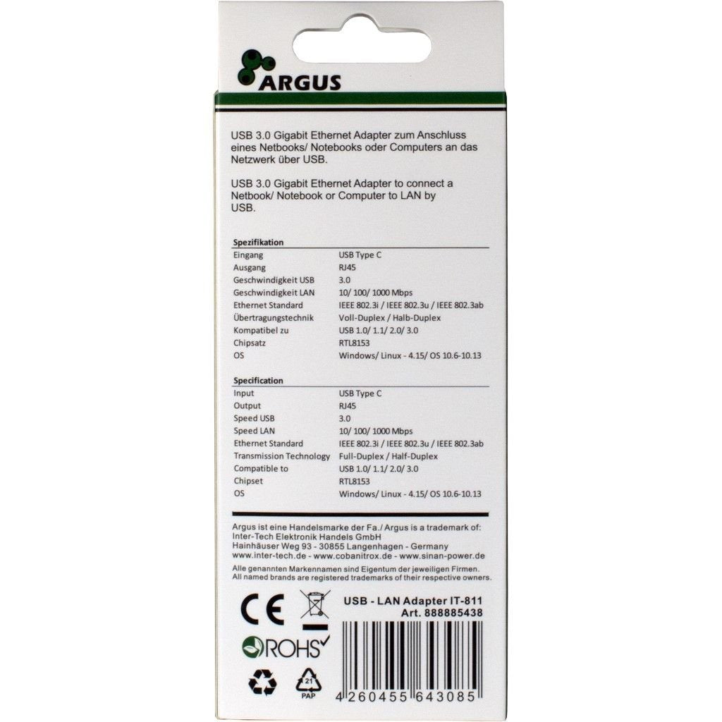 Inter-Tech ARGUS IT-811, Negro, Realtek RTL8153, 25 mm, 230 mm, 17 mm, 25 g