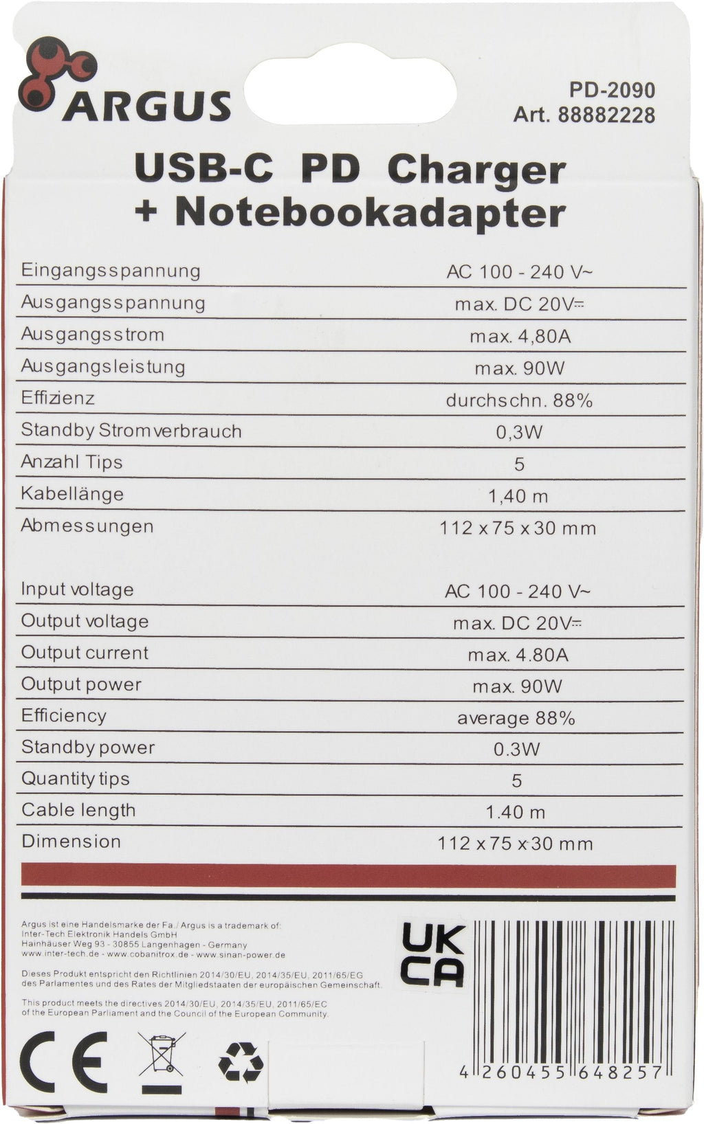 Inter-Tech PD-2090, Interior, Corriente alterna, 5 V, 1,4 m, Negro
