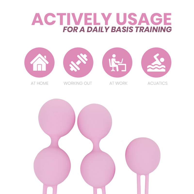 ; Basado en la realización de ejercicios de Kegel, desarrollados por el Dr. Arnold Kegel, son una serie de contracciones y relajaciones vaginales que fortalecen el músculo Pubococcígeo (PC) y el grupo de músculos del suelo pélvico mediante el aumento gradual de pesos.Especificaciones;