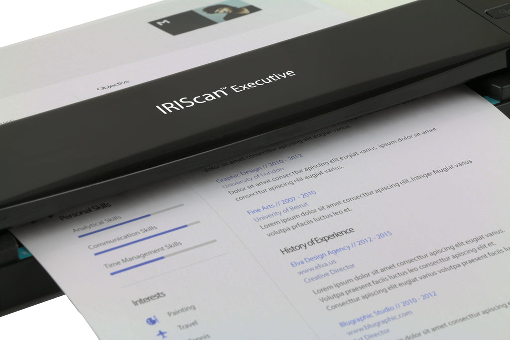 IRIScan™ Executive 4 es la herramienta de escaneado idónea para autónomos, empresas pequeñas y grandes, clínicas médicas o despachos de abogados. Permite escanear fácilmente notas en papel, recetas médicas, disposiciones legislativas, expedientes de clientes o historiales médicos, tarjetas de identificación o tarjetas de seguros médicos, y archivarlo todo en el software de gestión de documentos que desee.