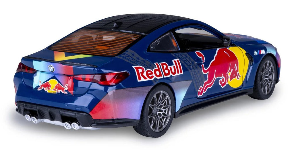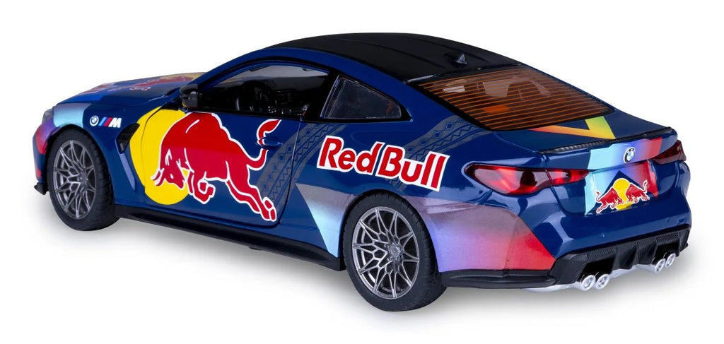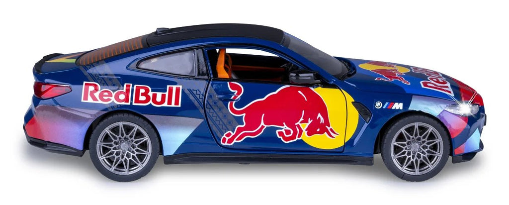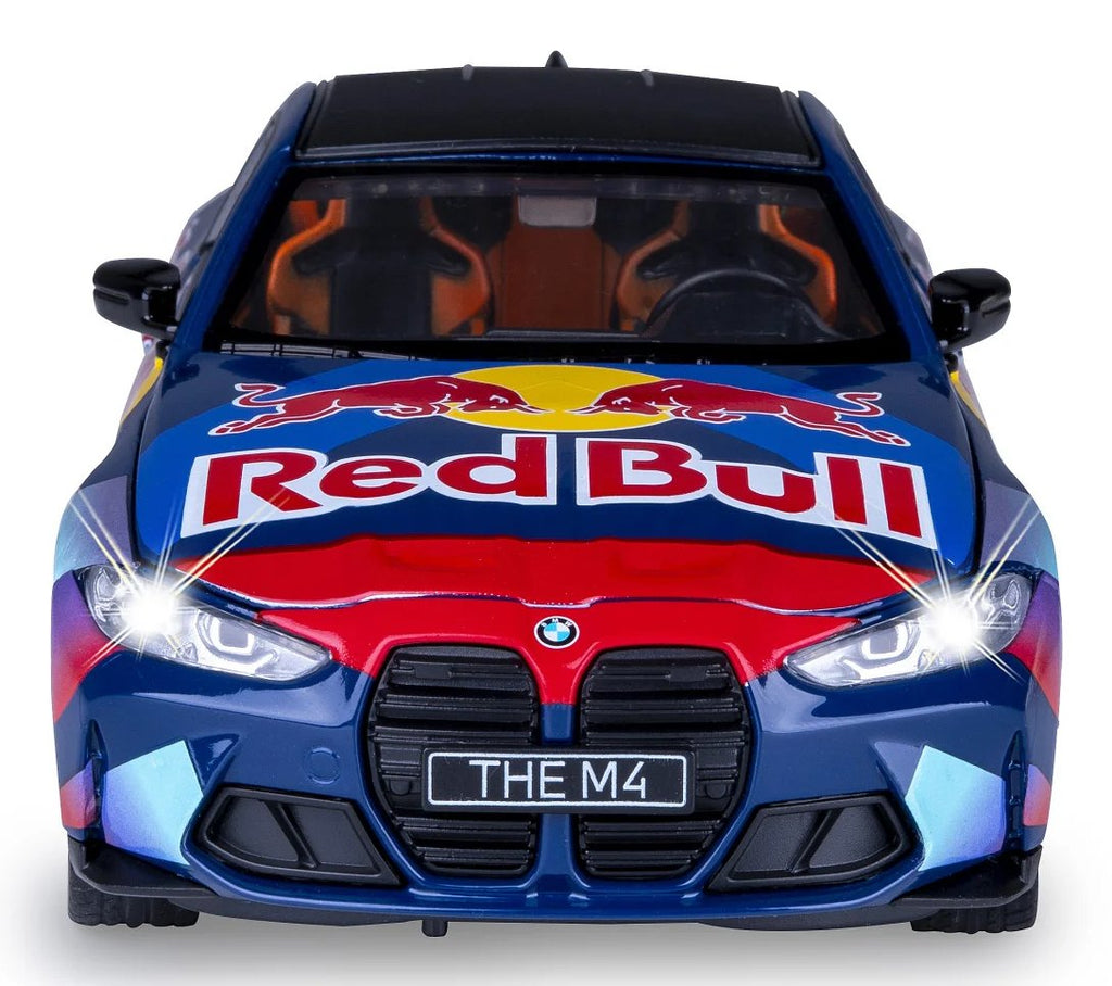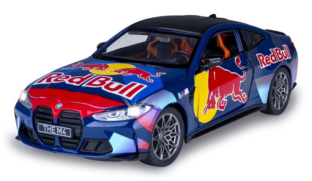 El BMW M4 es un deportivo de altas prestaciones que combina el ADN de BMW M GmbH en un elegante coupé. Con un potente motor de seis cilindros, un chasis preciso y un diseño dinámico, el M4 ofrece una experiencia de conducción inigualable tanto en carretera como en circuito. JAMARA trae este vehículo único a su vitrina de colección en una versión de alta calidad en metal fundido a presión (DIECAST) a escala 1:24, con muchos pequeños detalles que entusiasmarán a cualquier fanático. El BMW destaca por su diseño oficialmente licenciado y su interior detallado, que refleja toda la fascinación del vehículo original. La cabina ofrece espacio para una figura de juego, mientras que los neumáticos de goma y el parabrisas transparente realzan aún más el realismo del modelo. Equipado con luces LED, el BMW M4 también brilla en condiciones de poca luz. Las puertas y el capó se pueden abrir y cerrar manualmente. Al presionar la carrocería y abrir las puertas, se activan efectos de sonido realistas. El BMW M4 de JAMARA no solo es una verdadera atracción para su vitrina, sino también una pieza imprescindible para todo coleccionista y entusiasta de los deportivos alemanes.