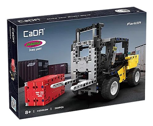 Descubre con JAMARA el mundo de CaDA Bricks, un universo de construcción lleno de creatividad, diversidad y sofisticación técnica. Los bloques de construcción de alta calidad de CaDA representan una excelente calidad, un ajuste perfecto y diversión duradera al construir. Ya seas principiante o un constructor experimentado, joven o adulto, CaDA ofrece el set ideal para cada nivel. Puedes construir siguiendo las instrucciones o dar vida a tus propias ideas. Con su variedad de modelos, diseños detallados y funciones inteligentes, los CaDA Bricks de JAMARA son mucho más que un juguete: son una experiencia creativa. Con el set CaDA carretilla elevadora, te espera un modelo técnico realista que combina de manera inteligente diversión y construcción. Con 388 piezas, se crea un montacargas completamente funcional con múltiples elementos móviles: desde la horquilla ajustable manualmente hasta la unidad de elevación basculante y el eje trasero direccionable. La cabina abierta está preparada para una figura de juego, los neumáticos de goma perfilados proporcionan una sensación de manejo auténtica y con los tres botones de control laterales se pueden manejar directamente la altura de la horquilla, la inclinación y la dirección. El diseño detallado y la hoja de calcomanías incluida completan visualmente el modelo. Ideal para niños a partir de 8 años y para todos los que aman las funciones técnicas en la construcción, este montacargas es una verdadera joya para pequeños y grandes constructores. Comienza tu próximo proyecto de construcción hoy mismo y descubre con JAMARA una nueva dimensión de construcción — tu mundo, bloque a bloque.