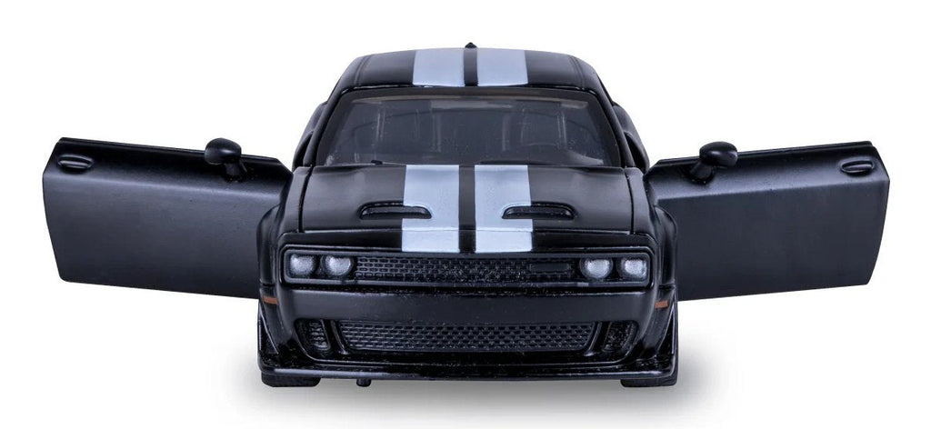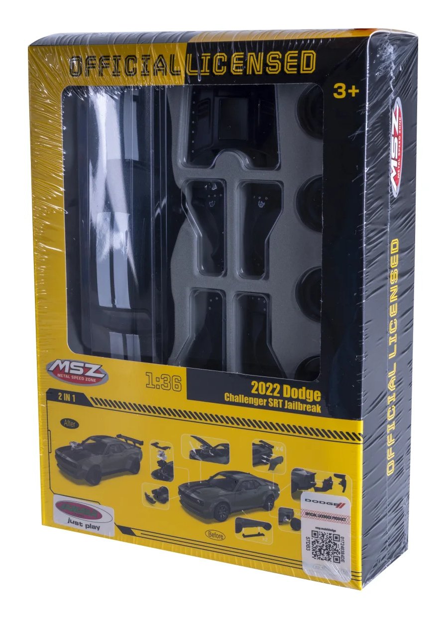 El Dodge Challenger SRT Jailbreak es una edición especial del legendario muscle car estadounidense y representa la máxima personalización y potencia brutal. Equipado con un motor HEMI V8 de más de 800 caballos de fuerza, el Jailbreak ofrece una experiencia de conducción incomparable y pura diversión automovilística americana, ¡un verdadero monstruo en la carretera! JAMARA trae este vehículo único a su vitrina de colección en una escala de alta calidad 1:36 en metal (DIECAST), con muchos pequeños detalles que entusiasmarán a todos los fanáticos. El modelo, con licencia oficial, impresiona por su interior detallado y el diseño distintivo del Challenger SRT Jailbreak. La cabina para figuras de juego, neumáticos de goma perfilados y un parabrisas transparente completan la apariencia auténtica. Con el kit de personalización de tuning de varias piezas, puede personalizar el modelo según sus deseos. Las puertas y el capó se pueden abrir manualmente, revelando el impresionante interior, lo que lo convierte en un verdadero punto culminante para cualquier coleccionista. El Dodge Challenger SRT Jailbreak de JAMARA no solo es una pieza llamativa para su vitrina, sino también un must para cualquier coleccionista y entusiasta de los muscle cars estadounidenses.