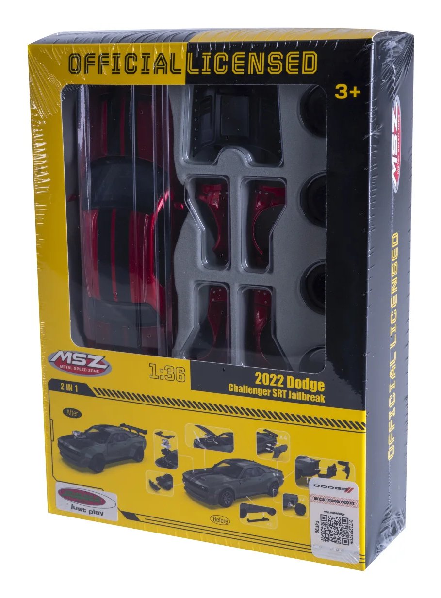 El Dodge Challenger SRT Jailbreak es una edición especial del legendario muscle car estadounidense y representa la máxima personalización y potencia brutal. Equipado con un motor HEMI V8 de más de 800 caballos de fuerza, el Jailbreak ofrece una experiencia de conducción incomparable y pura diversión automovilística americana, ¡un verdadero monstruo en la carretera! JAMARA trae este vehículo único a su vitrina de colección en una escala de alta calidad 1:36 en metal (DIECAST), con muchos pequeños detalles que entusiasmarán a todos los fanáticos. El modelo, con licencia oficial, impresiona por su interior detallado y el diseño distintivo del Challenger SRT Jailbreak. La cabina para figuras de juego, neumáticos de goma perfilados y un parabrisas transparente completan la apariencia auténtica. Con el kit de personalización de tuning de varias piezas, puede personalizar el modelo según sus deseos. Las puertas y el capó se pueden abrir manualmente, revelando el impresionante interior, lo que lo convierte en un verdadero punto culminante para cualquier coleccionista. El Dodge Challenger SRT Jailbreak de JAMARA no solo es una pieza llamativa para su vitrina, sino también un must para cualquier coleccionista y entusiasta de los muscle cars estadounidenses.