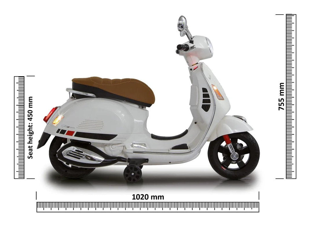 Aquí se respira claramente el estilo italiano en las habitaciones de los niños! La Vespa GTS 125 Ride-on trae el estilo de vida del Dolce Vita directamente a casa. Este pequeño scooter Vespa, que se puede encontrar en todas las ciudades italianas, ahora se ofrece como una moto miniatura licenciada por JAMARA. Los conductores más pequeños, a partir de los 3 años, pueden recorrer desde su habitación hasta el salón con este scooter. Con su diseño con licencia oficial y detalles realistas como el tablero de instrumentos iluminado y el sonido del motor al arrancar, cada niño sentirá que está montando una verdadera moto. Los potentes motores de tracción y la batería de iones de litio de 12,6V garantizan largas horas de conducción y mucha diversión. El asiento de cuero sintético acolchado proporciona la máxima comodidad, mientras que las ruedas de apoyo aseguran un paseo seguro. El puerto USB, la entrada de audio Aux y la ranura para tarjeta microSD con función MP3 añaden más diversión musical al viaje. El diseño fiel al original, las ruedas de apoyo y los anillos de goma Ultra Grip en las ruedas hacen de la Vespa una verdadera joya, mientras que el arranque sin llave con solo presionar un botón asegura comodidad. ¡Un vehículo perfecto para los pequeños fans de Vespa! Y mientras los niños se divierten, los padres pueden tomarse una pequeña pausa con un espresso.
