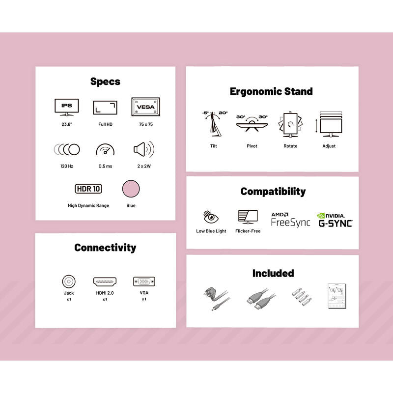 Japannext 60,5cm Jn-I238fhd120f-Hsp-Pk 16:9 Hdmi Rosa Fhd