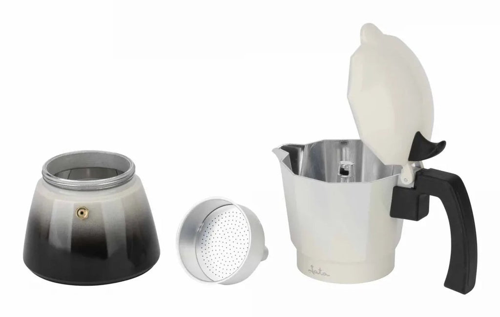 JATA HCAF2406, Cafetera italiana, 0,3 L, Negro, Blanco, Aluminio, 6 tazas, 100,5 mm