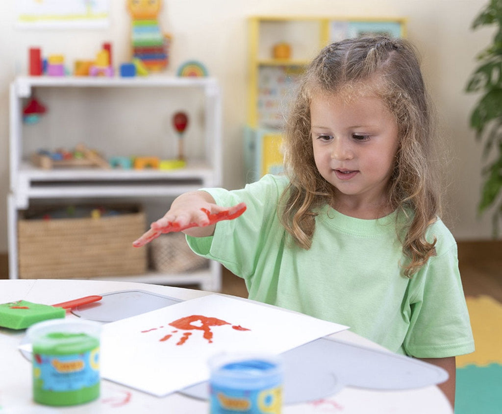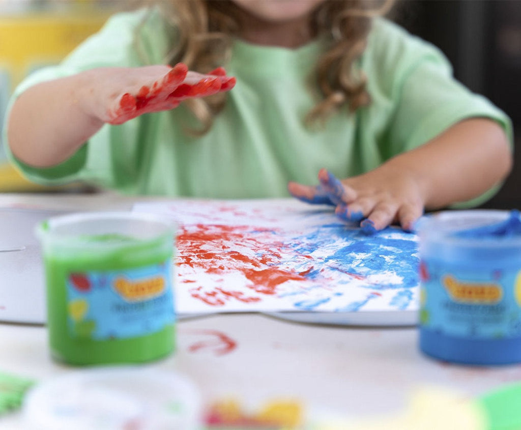 Una fantástica gama de divertidos colores que se pueden mezclar; estimulan la coordinación motora y la psicomotricidad fina de manos y dedos. Se aplica directamente con los dedos, pincel, rodillos o espátulas, para conseguir los resultados más