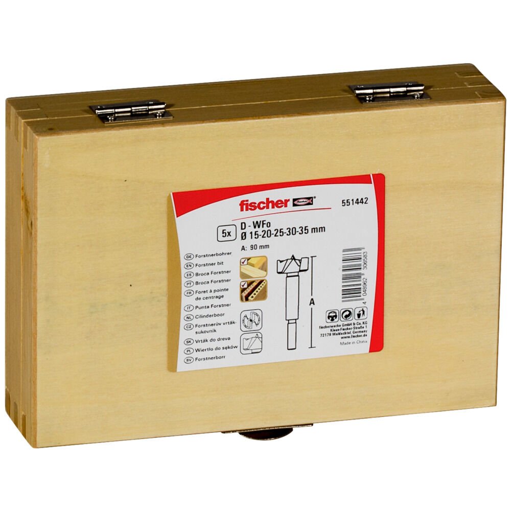Fischer 551442, Taladro, 3,5 cm, Madera noble, Madera blanda, Madera, 5 pieza(s), 15, 20, 25, 30, 35