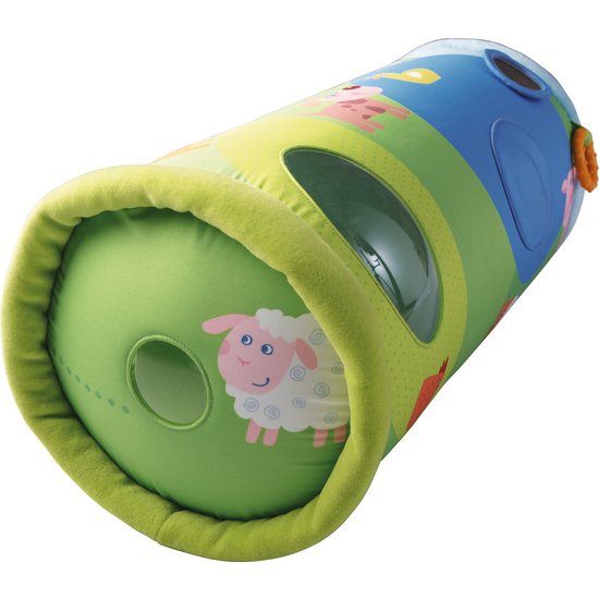 Con este rollo para gatear relleno de aire, todos los bebés pueden descubrir muchas cosas al gatear empujándolo: diferentes animales de la granja, efectos crujientes y táctiles... hay muchas cosas por palpar y explorar, jugar y sorprenderse. Sus diferentes detalles convierten a este rollo para gatear en un juguete fascinante para nuestros pequeños exploradores.