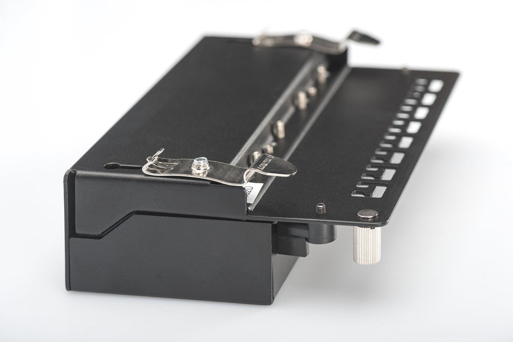 El juego de montaje de carril DIN DIGITUS® para paneles de conexión de sobremesa es un producto robusto y de alta calidad desarrollado especialmente para su uso en cajas de distribución eléctrica. Con los 2 tornillos M5 y los 2 rieles de sombrero, es posible una instalación rápida y sencilla en el riel de sombrero. El producto cumple las normas ISO/IEC 11801 3ª Ed., EN 50173-1 y EIA/TIA 568-C y está certificado conforme a las normas de la UE. La carcasa vacía es de metal fundido a presión y el material es muy robusto y duradero. El conjunto de montaje en carril DIN es apto para altas temperaturas de trabajo y almacenamiento, lo que lo hace especialmente versátil. El diseño sencillo y elegante garantiza un ajuste perfecto para paneles de conexión y racks en armarios. El producto es fácil de montar y el material sólido garantiza una instalación segura. Este juego de montaje para carril de sombrero le ofrece una solución perfecta para instalar paneles de conexión en cajas de distribución eléctrica.