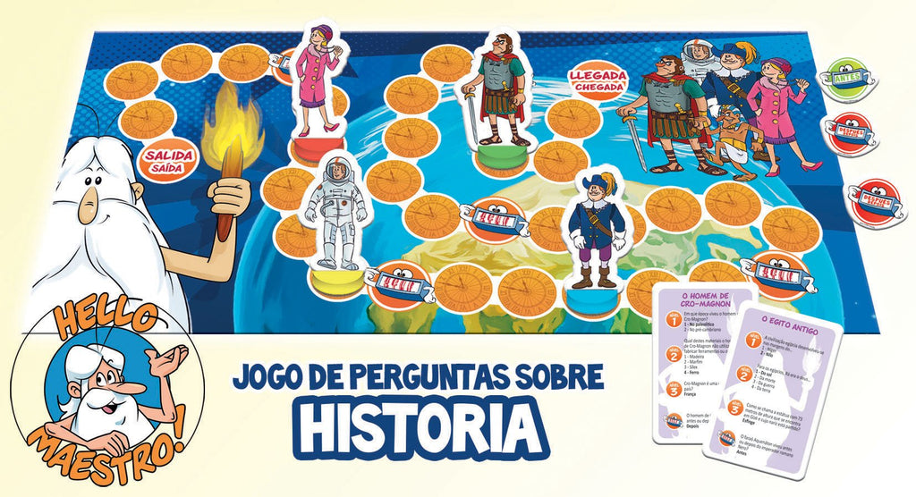 Un mini juego de mesa con más de 300 preguntas sobre la historia de la humanidad, basado en la famosa serie Érase una vez… El Hombre.
