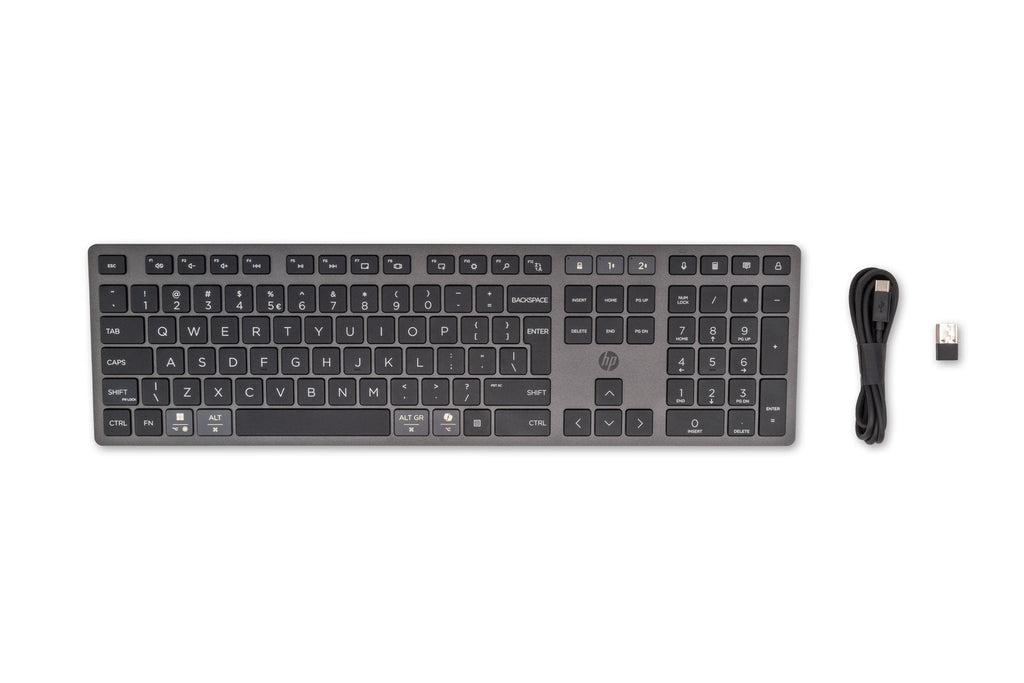 Disfruta de una conexión segura y cifrada AES de 128 bits con tus dispositivos diarios. Vincula hasta 8 dispositivos HP y guarda el HP Unifying Dongle en el espacio de almacenamiento incluido en el teclado para que no se pierda.
