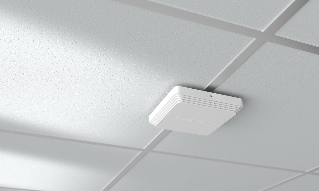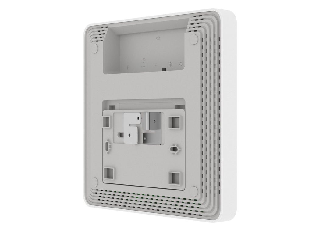 - Montaje en pared o techo: Este dispositivo de Keenetic puede colocarse sobre una superficie plana o fijarse a una pared o a un techo sólido utilizando el kit de montaje suministrado. También puede instalarse en techos suspendidos utilizando el kit de montaje y los clips de riel en T