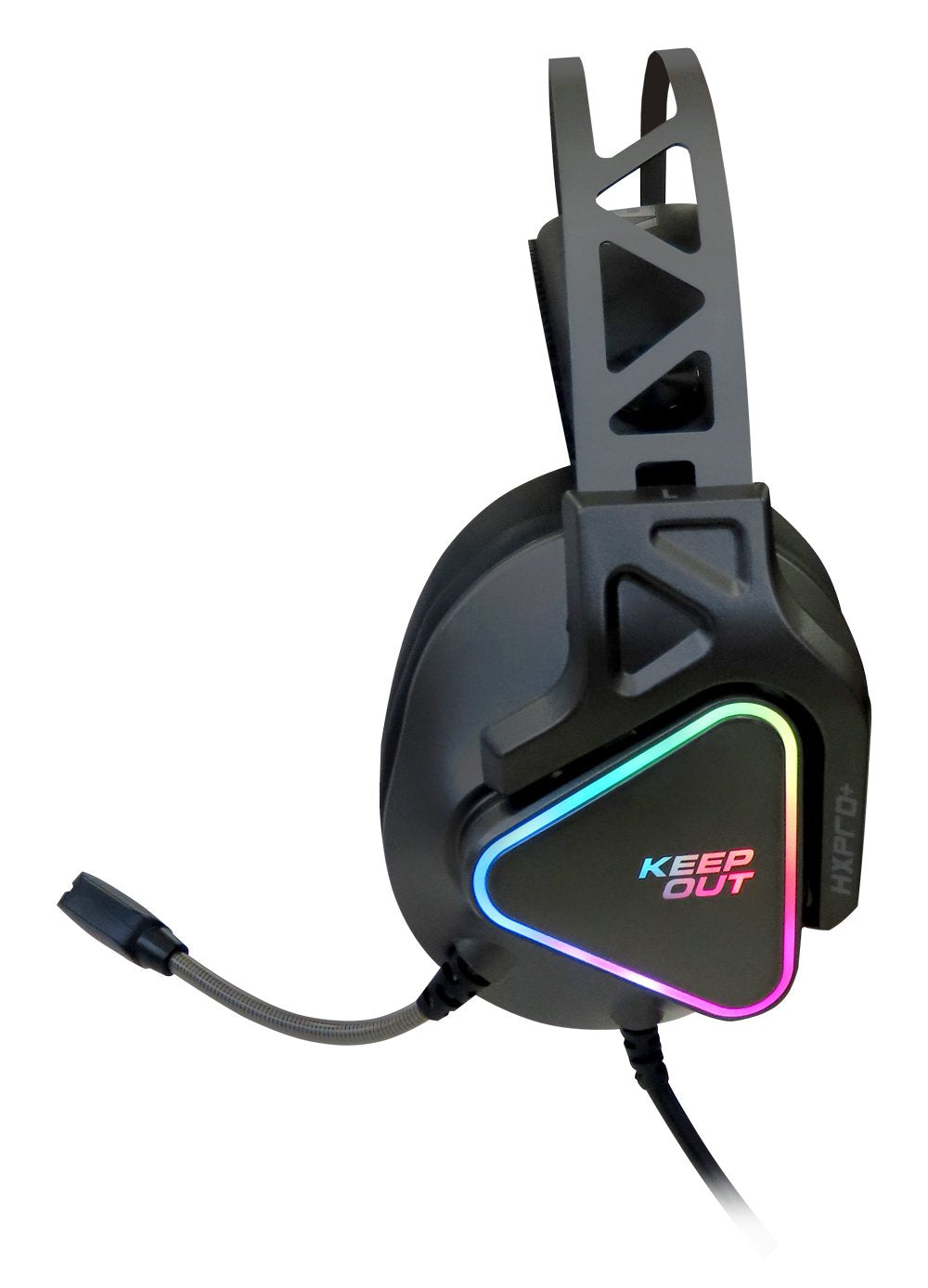 El HXPRO+ de Keep Out cuenta con un sistema de sonido envolvente 7.1 y con unos altavoces internos de 53mm de diámetro + iluminación RGB. Son cómodos y ligeros y con almohadillas suaves que te permitirán muchas horas de uso sin notar molestias. Incorpora un micrófono flexible y control de volumen en el cable.