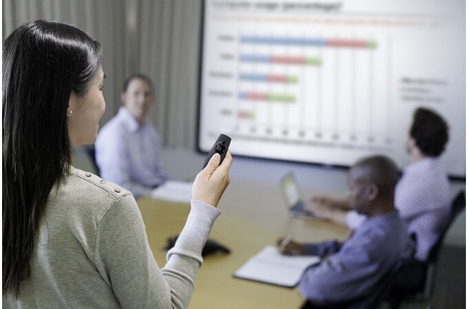 Dirija la atención del público con el simple toque de un botón y un brillante láser rojo resaltará cualquier parte de la presentación con total eficacia.