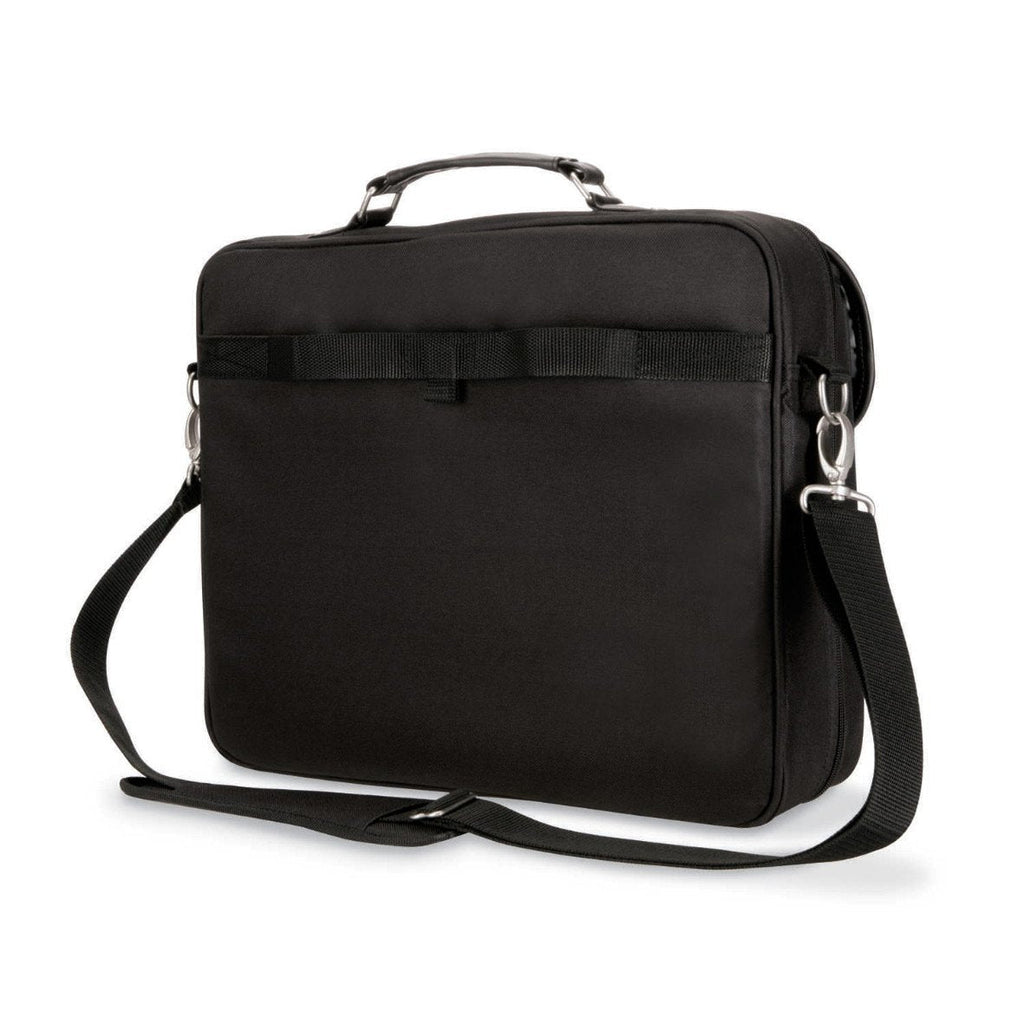 El Kensington SP30 es un clásico aunque funcional maletín para portátiles con espacio para guardar sus objetos más importantes. El compartimento almohadillado protege su portátil, mientras que el bolsillo frontal permite acceder rápidamente a los objetos que más necesita. Incluso se acopla a su trolley para que viaje más fácilmente en avión.