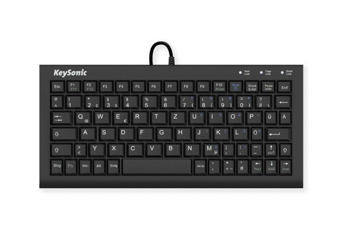 KeySonic ACK-3401U, Mini, Alámbrico, USB, Interruptor de membrana, QWERTZ, Negro