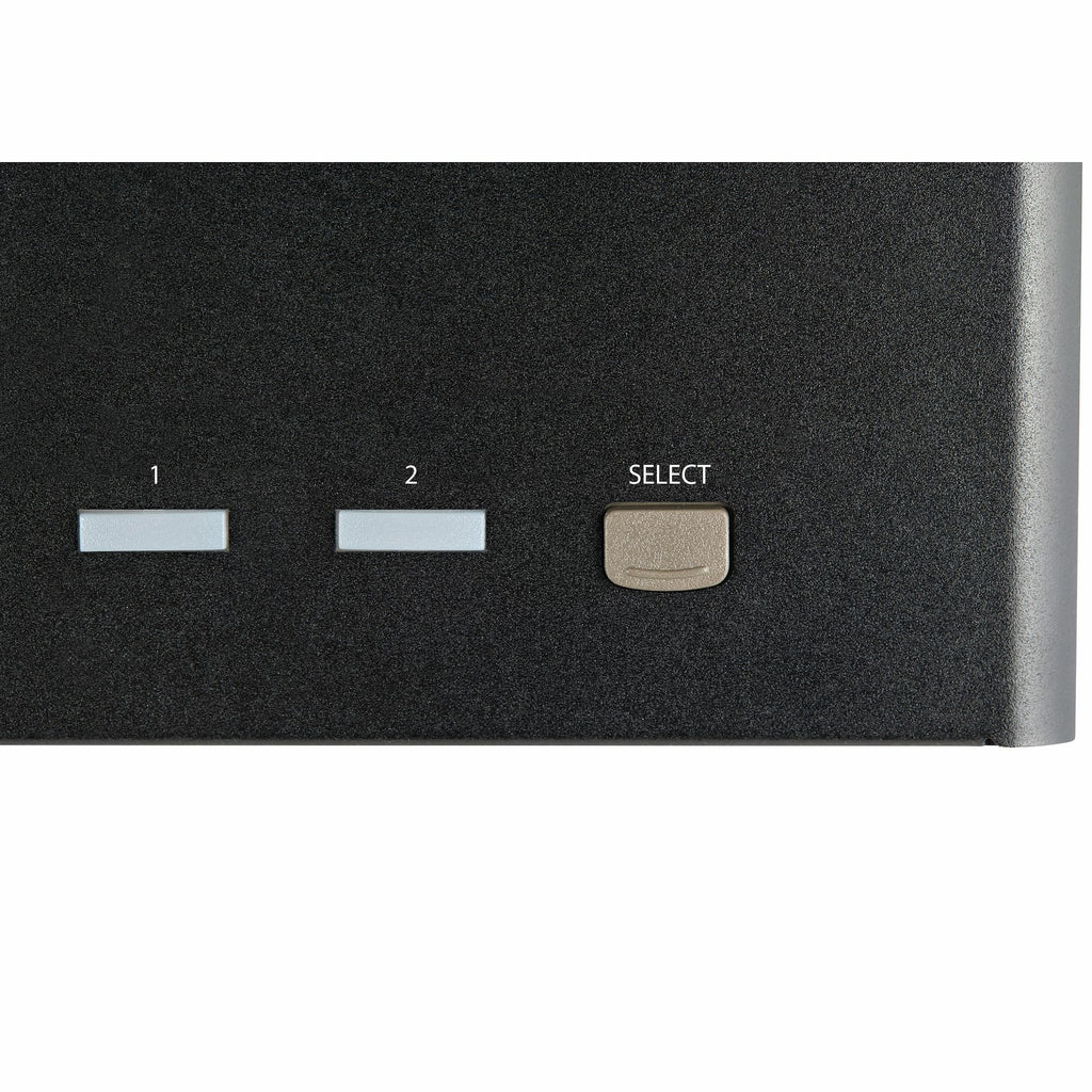Este conmutador KVM de 2 puertos combina la capacidad de visualización digital 4K (60Hz) con control de hasta dos ordenadores conectados. Imágenes de calidad 4K 60Hz y total compatibilidad con audio El conmutador KVM DisplayPort admite resoluciones de hasta 4K a 60Hz. Admite tres monitores grandes a la resolución 4K total. Incluye emulación USB para mayor rapidez de conmutación y evitar interrupciones del flujo de trabajo. Compatible con audio digital (con pantallas y fuentes compatibles) y audio estéreo 3,5mm independiente, el conmutador KVM DisplayPort 1.2 ofrece total compatibilidad con audio. Concentrador USB integrado El concentrador USB 3.0 integrado le permite compartir dos periféricos adicionales (además del teclado y el ratón) entre los ordenadores conectados, como si estuvieran conectados directamente a su ordenador anfitrión, lo cual evita los gastos de adquirir dispositivos por duplicado, como impresoras y escáneres. Compatible con Windows, Mac y Linux Además de su compatibilidad con Windows, este conmutador KVM DP también es compatible con los sistemas operativos Mac y Linux. Fácil de utilizar Los botones del panel frontal facilitan cambiar entre sistemas y activar la función de autoescaneado. La funcionalidad de combinación de teclas facilita el rápido acceso al sistema, mientras un pitido confirma el cambio. StarTech.com le ofrece una amplia selección de conmutadores KVM de alta calidad y demás productos relacionados con KVM, que le permiten acceder a sus sistemas de manera más eficiente, sin gastos extra ni maraña de teclados, ratones y monitores adicionales.