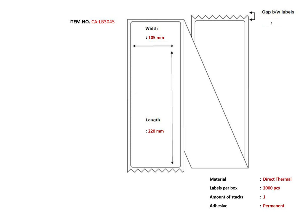 Capture CA-LB3045, Blanco, Plegado en abanico, Térmica directa, Permanente, 10,5 cm, 22 cm