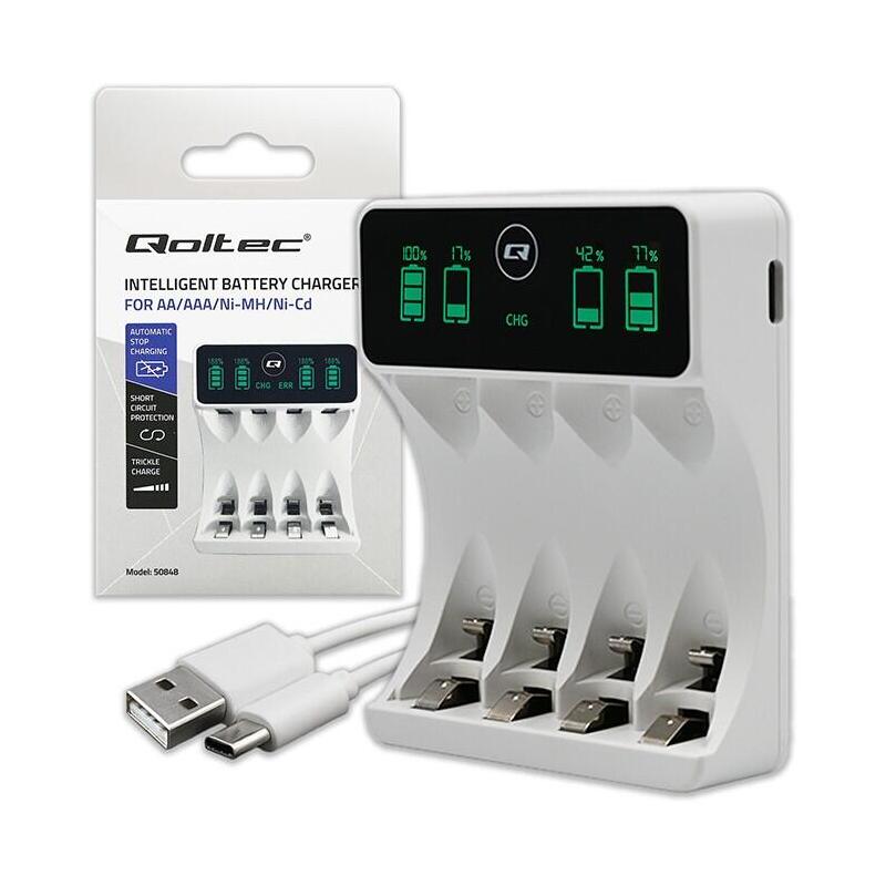 Ladowarka Do Akumulatorków Ni-Mh Typu R03 Aaa R6 Aa Lcd Kabelusb-C Biala