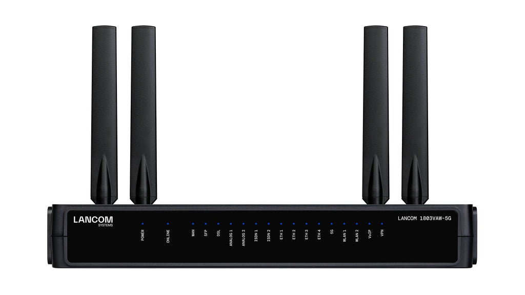 LANCOM 1803VAW-5G (EU), Negro, Montaje de sobremesa/pared, 1 Ventilador(es), Externo, RTP, SIPS, SRTP, 10,100,1000 Mbit/s