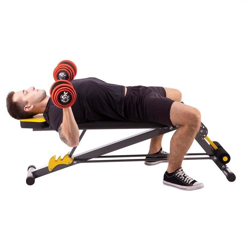 HMS Fitness LSR8311, Banco de musculación multiposición, 160 kg, Hogar, Asb, Bíceps, Body core, Pecho, Acero, Madera, Negro, Amarillo