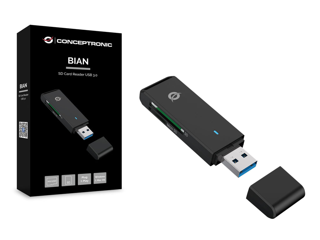 Conceptronic BIAN02B, MicroSD (TransFlash), MicroSDHC, MicroSDXC, SD, SDHC, SDXC, Negro, USB 3.2 Gen 1 (3.1 Gen 1) Type-A, 21,5 mm, 71,2 mm, 9,6 mm