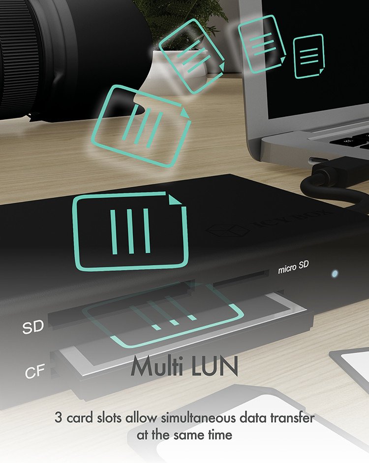 ICY BOX IB-CR401-C3, CF, MicroSD (TransFlash), MicroSDHC, MicroSDXC, SD, SDHC, SDXC, Negro, 5000 Mbit/s, Aluminio, Plástico, USB 3.2 Gen 1 (3.1 Gen 1) Type-C, 77 mm