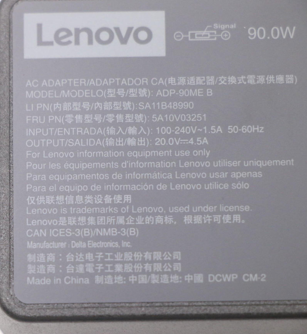 Lenovo 5A10V03251, Portátil, Interior, 100 - 240 V, 50/60 Hz, 90 W, 20 V